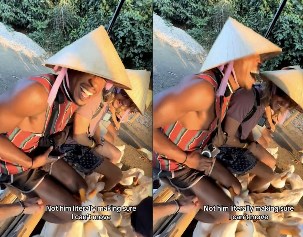Theo video ghi lại, người dân địa phương bắt đầu rắc một ít thức ăn quanh chân du khách. Chỉ vài giây sau, đàn vịt thi nhau ùa tới, rỉa rỉa, mổ mổ nhẹ quanh bàn chân khiến vị khách cười ngặt nghẽo vì cảm giác nhột, thỉnh thoảng còn la toáng lên vì quá bất ngờ. Động tác của đàn vịt không hề gây đau, mà giống như một kiểu massage tự nhiên, tạo ra trải nghiệm độc đáo đến mức vị khách cứ cười suốt buổi, vừa khoái chí vừa hơi "hú hồn".