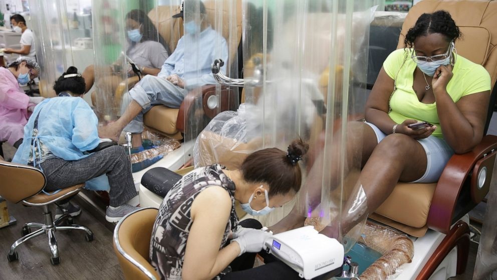 Các nhân viên làm nail, phần lớn là người da màu thuộc tầng lớp lao động, phải đối mặt với tỷ lệ lây nhiễm Covid-19 ở mức báo động. Ảnh: Getty.