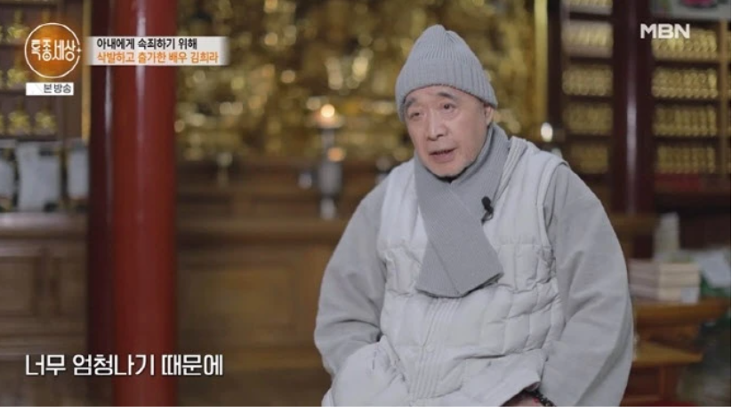 Theo Osen, mới đây, chương trình Đời sống đặc biệt của đài MBN (Hàn Quốc) phát sóng câu chuyện nam diễn viên gạo cội Kim Hee Ra, khi ông quyết định xuất gia ở tuổi 78. Lý do lớn nhất của quyết định trên là để sám hối với vợ, người đã chịu đựng sự phản bội, thất bại tài chính và bệnh tật của ông suốt nhiều năm.