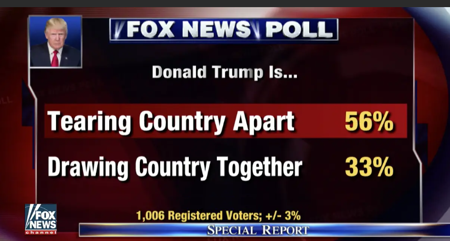 Cuộc thăm dò cũng phát hiện ra rằng người Mỹ nói rằng Trump đã làm nhiều điều xấu hơn là tốt với biên độ 15 điểm (50 phần trăm xấu so với 35 phần trăm tốt). Trong số những người độc lập, 19 phần trăm nói rằng 100 ngày đầu tiên của Trump tốt hơn là xấu.