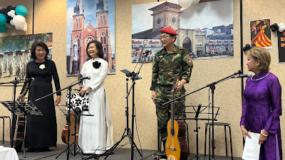 Sau đó đến 5 giờ đi tập ở Đông Phương Hội về thì lại đi họp toastmaster rồi lại đi xem đồng chí gái trình diễn nhạc ngày 30/4. Rất buồn. Sau đó mình ghé lại thư viện Việt Nam thì thấy họ, như mọi năm để bàn thờ các tướng tuẫn tiết ngày này 50 năm trước sau khi vị tổng thống cuối cùng tuyên bố đầu hàng. Ông này là người cầm đầu khai tử đệ nhất Việt Nam Cộng Hoà và cũng là người đứng đầu cuối cùng của đệ nhị Việt Nam Cộng Hoà. Cũng ngày này, 50 năm trước một người cậu họ, con ông chú ruột của mẹ mình tự tử. Nên thắp nén hương cho cậu.