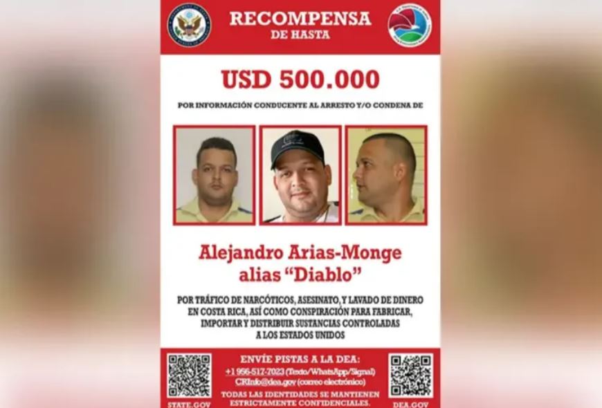 Các nhà chức trách Costa Rica ngày 1/5 cho biết Chính phủ Mỹ đã treo thưởng 500.000 USD cho bất cứ ai cung cấp thông tin dẫn đến việc bắt giữ trùm buôn bán ma túy khét tiếng Alejandro Arias Monge với biệt danh "Diablo", kẻ đang bị truy nã gắt gao nhất tại quốc gia Trung Mỹ này.