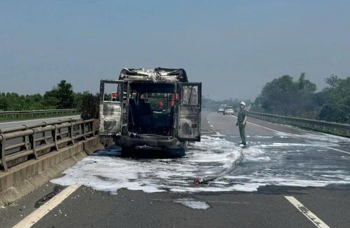 Xe tang bị bốc cháy trên làn đường chính có tốc độ giới hạn từ 80-100km tại km23 + 919 thuộc địa phận tỉnh Vĩnh Phúc.
