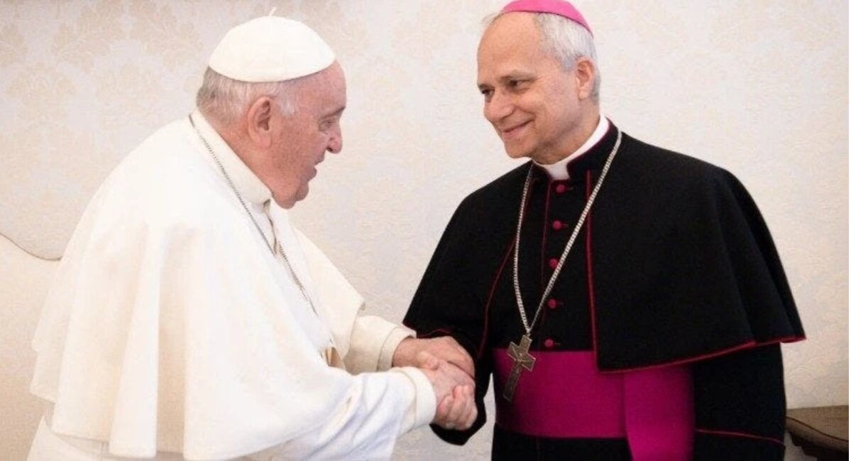 Đức Giáo hoàng Francis chào đón Đức Hồng y Mỹ Robert Francis Prevost trong Thánh lễ kỷ niệm Ngày của Lực lượng vũ trang, Cảnh sát và Nhân viên an ninh tại Quảng trường Thánh Peter vào ngày 9/2/2025 tại Vatican. Vào đầu năm 2025, một trong những hành động cuối cùng của Giáo hoàng Francis trước khi qua đời vào tháng 4 là trao cho Robert Prevost tước vị cao nhất trong Hồng y đoàn - âm thầm đưa hồng y người Mỹ trở thành ứng cử viên sáng giá không chính thức cho ngôi vị giáo hoàng kế nhiệm.