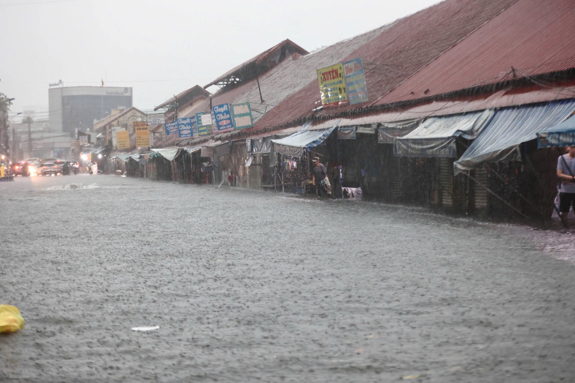Chợ Thủ Đức đang nằm trong biển nước. (Ảnh: VNExpress)