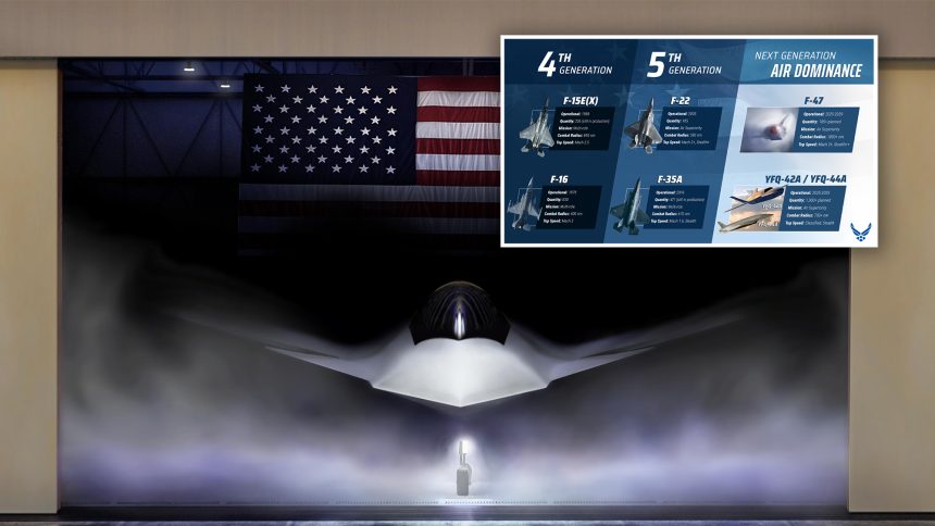 Hình ảnh mô phỏng chính thức của F-47 và đồ họa do Tướng David Allvin đăng tải. Ảnh: Không quân Mỹ