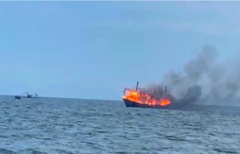 Old  Default Tàu cá tiền tỷ bốc cháy dữ dội, thuyền viên lao xuống biển thoát thân