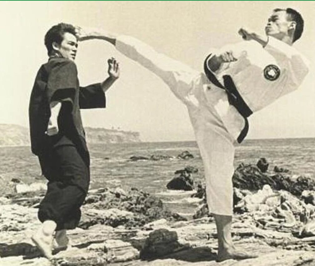 Jhoon Goo Rhee (phải) là người mài giũa khiến cú đá của võ sư họ Lý nguy hiểm hơn bao giờ hết