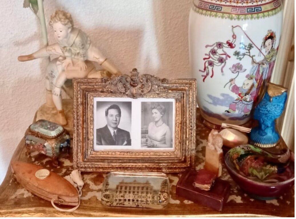 Bức ảnh vua cha Bảo Đại và mẹ ông, bà Christiane Bloch-Carcenac, được đặt bên chiếc bàn cạnh ghế sôpha, nơi ông thường ngồi tiếp khách.