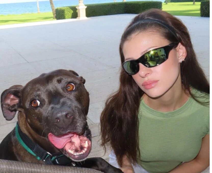 Nicola Peltz chụp ảnh cùng chú chó pit bull. Ảnh: @nicolapeltz.