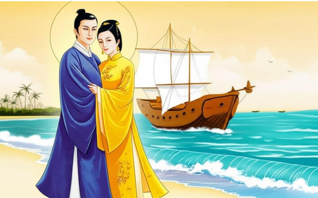 Hình ảnh nàng công chúa Ngọc Hoa bên người chồng Araki - Sotaro chuẩn bị lên thuyền về Nhật Bản. Ảnh do Ai tạo