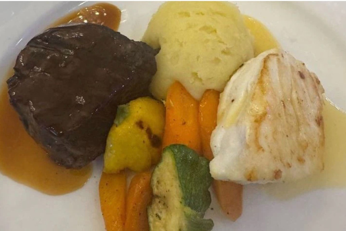 Món bít tết tại tiệc của ông Trump. Ảnh: Telegraph