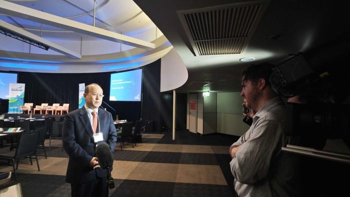Đại sứ Trung Quốc tại Australia Tiếu Thiên trả lời phỏng vấn báo chí. Nguồn: ĐSQ Trung Quốc tại Australia