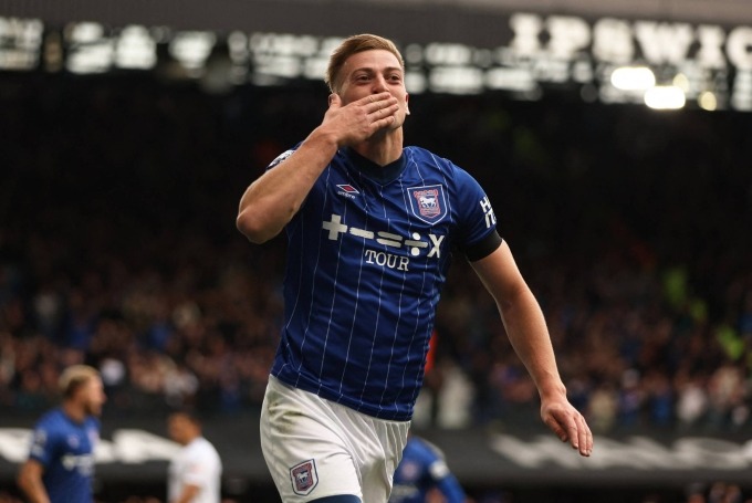 Delap lập cú đúp trong trận Ipswich ḥa Aston Villa 2-2 ở Ngoại hạng Anh 2024-2025. Ảnh: Reuters