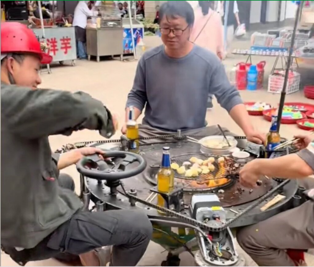 Sử dụng vật liệu phế thải như thép vụn, phụ tùng xe máy cũ và phế liệu xây dựng, ông Gu đã hoàn thành 300 phương tiện – bao gồm cả một chiếc bàn nướng BBQ di động (ảnh trên). Ảnh: Douyin