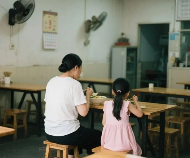 Vào một ngày nọ, có một cặp mẹ và con gái khoảng 10 tuổi bước vào một quán mì nhỏ nằm trong con hẻm ở Thâm Quyến. Bé gái diện một chiếc váy đắt tiền, trong khi người mẹ lại giản dị với áo phông bạc màu và quần jean.