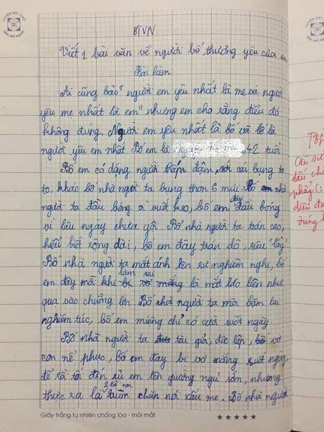 Bài văn chỉ toàn là những lời “bóc phốt” của học sinh về bố.