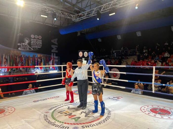 Võ sĩ Huỳnh Hà Hữu Hiếu giành HCV thế giới Muay hạng 45 kg nữ - Ảnh: Giap Thang