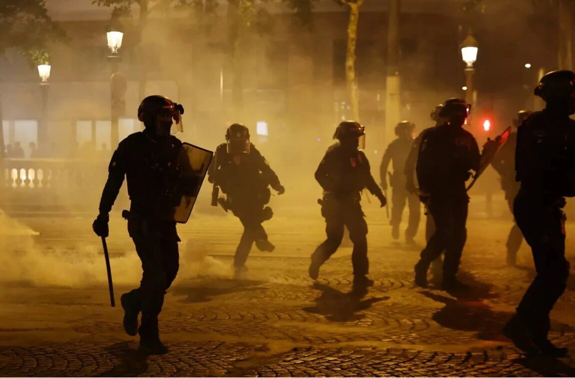 Lực lượng chức năng cho biết có ít nhất 192 người bị thương, bao gồm 22 nhân viên an ninh và 7 lính cứu hỏa; hơn 200 phương tiện bị đốt cháy và gần 600 người bị bắt trên toàn quốc - Ảnh: Le Figaro