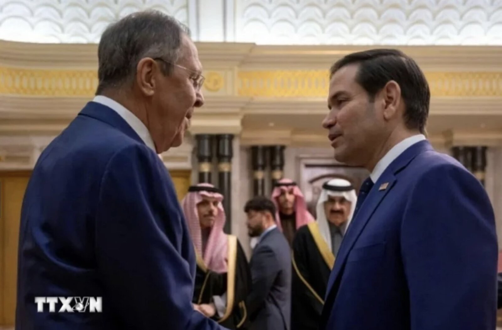 Ngoại trưởng Mỹ Marco Rubio (phải) và Ngoại trưởng Liên bang Nga Sergei Lavrov tại cuộc gặp ở Riyadh, Saudi Arabia.