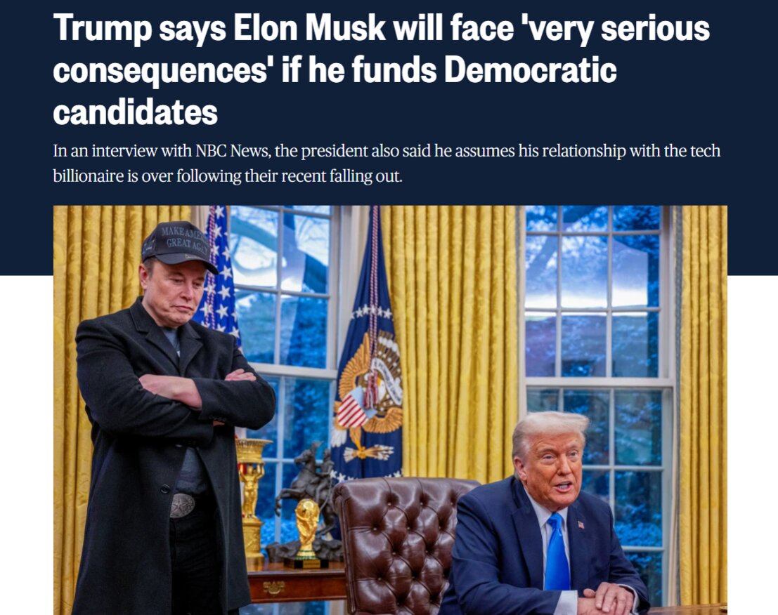 Musk đã đóng góp hỗ trợ tài chính lớn cho chiến dịch tranh cử tổng thống của Trump vào năm 2024, chi hơn một phần tư tỷ đô la để thúc đẩy ông ở các tiểu bang dao động vào năm ngoái. Trong những tháng đầu tiên của chính quyền, Trump đã giao cho Musk phụ trách Bộ Hiệu quả Chính phủ, nơi ông giám sát việc sa thải hàng loạt công nhân liên bang và đóng cửa hoặc đóng cửa một phần một số cơ quan.
