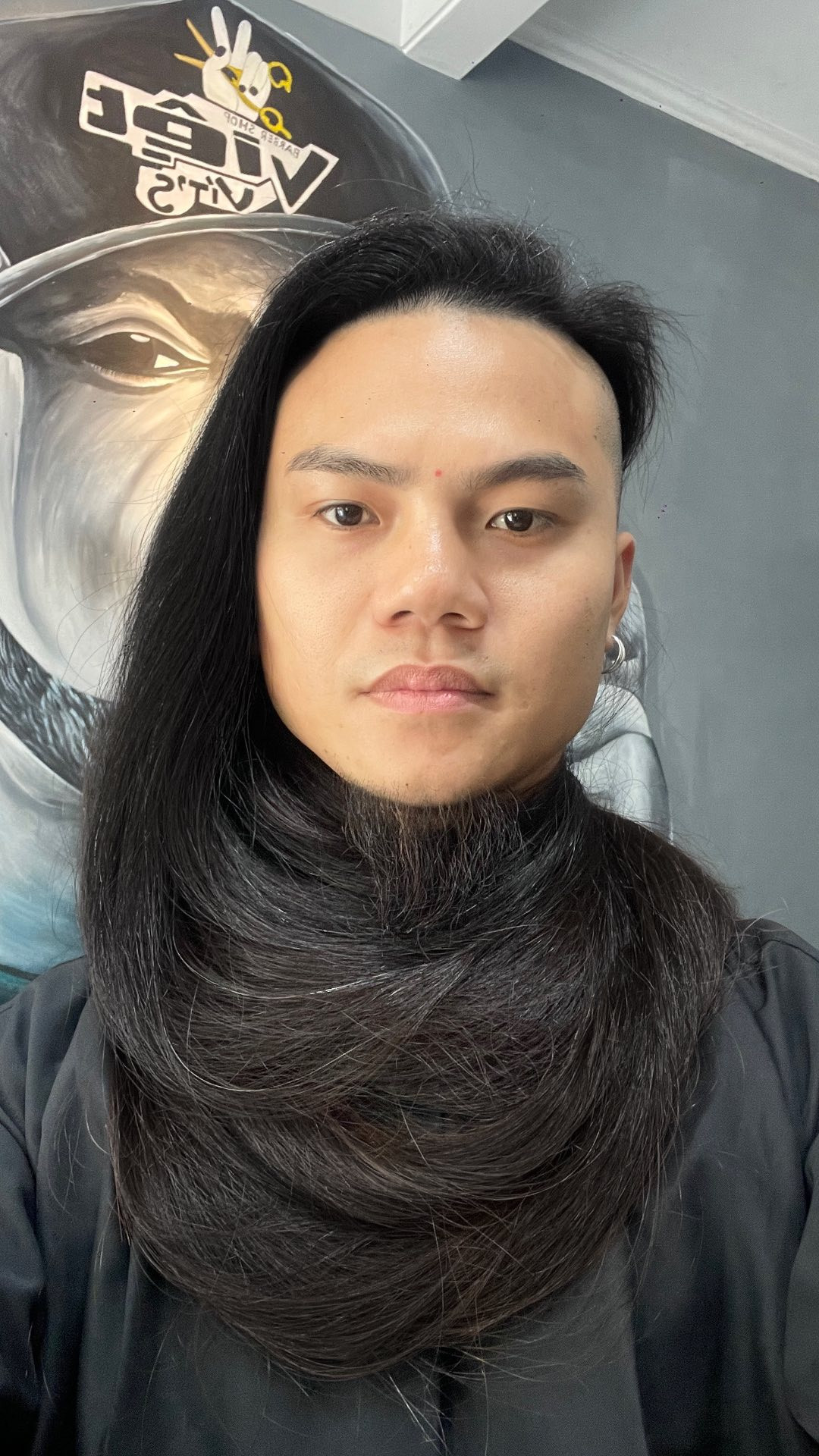 V́ mái tóc dày, anh thường cúi xuống gội trong bồn gội đầu ngay tại tiệm để có thể làm sạch sâu phần chân tóc. Anh cũng đứng lên ghế để ngọn tóc không chạm xuống nền nhà.