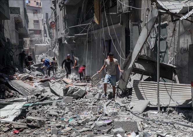 Cảnh đổ nát sau các cuộc không kích của Israel xuống thành phố Gaza ngày 31/5/2025.