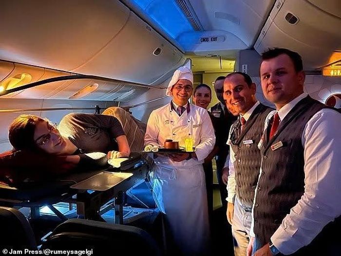 Do không thể ngồi trên ghế máy bay thông thường, Rumeysa buộc phải được khiêng lên máy bay bằng cáng, nằm cố định trong suốt chuyến đi.
