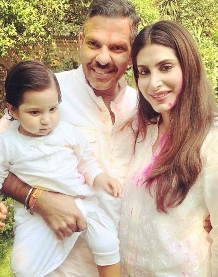 Sunjay Kapur bên Priya Sachdev và con trai. Ảnh: @priyasachdevkapur.