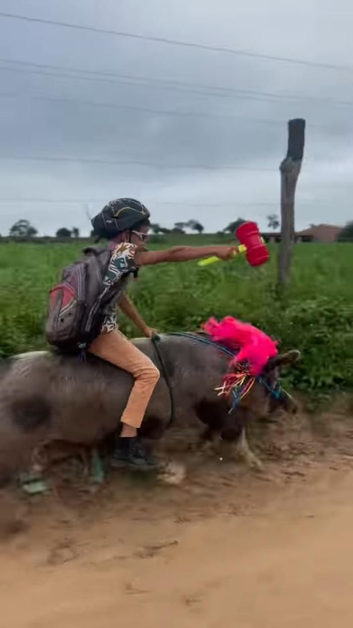 Không phải truyện cổ tích, cũng chẳng phải kỹ xảo điện ảnh – một cậu bé 9 tuổi đã khiến cả thế giới sửng sốt khi… cưỡi lợn đến trường. Hình ảnh đáng yêu nhưng cũng đầy phi thường của cậu bé Gutinho Rocha cùng chú lợn nái "tên lửa" đã trở thành hiện tượng mạng, thu hút hàng triệu lượt xem và hàng loạt lời trầm trồ ngưỡng mộ từ cư dân mạng khắp nơi.