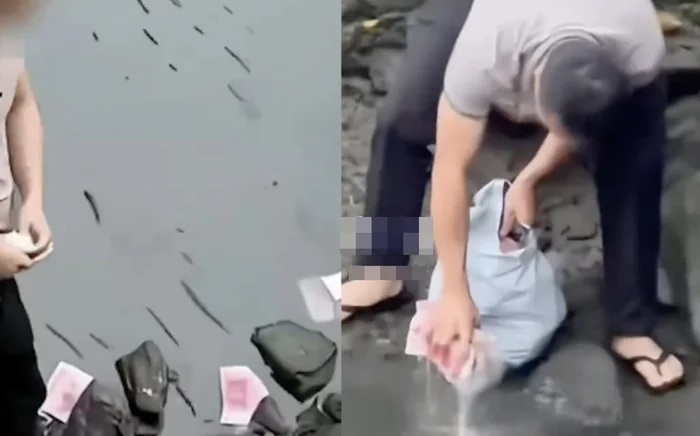 Theo như trong đoạn video mới đây lại lan truyền chóng mặt trên mạng xã hội, có một người đàn ông với túi nhựa trên tay cúi xuống nhặt từng xấp tiền, rồi len qua lan can ven sông để cẩn thận đặt những tờ tiền ấy vào một chiếc xe ô tô nhỏ đậu sẵn bên kia đường gây sự hoang mang của người dân từ nhiều cọc tiền mặt đã trôi nổi trên sông.