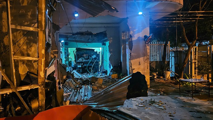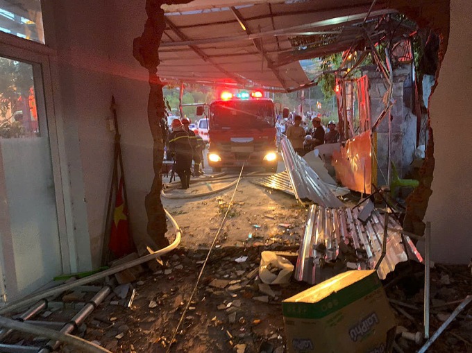 Tại hiện trường, nhiều mảnh tường đổ sập, vật dụng trong nhà bị nghiền nát. Xe tải vẫn đang nằm sâu trong căn nhà. Căn nhà trên được chủ nhà cho một người khác thuê mở quán cafe được một tuần, thời điểm xe tông quán không có khách.