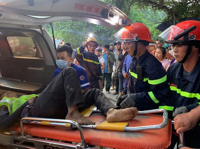 Lực lượng cứu hộ hỗ trợ đưa nạn nhân trong nhà đi cấp cứu. Ảnh: Trung Kiên