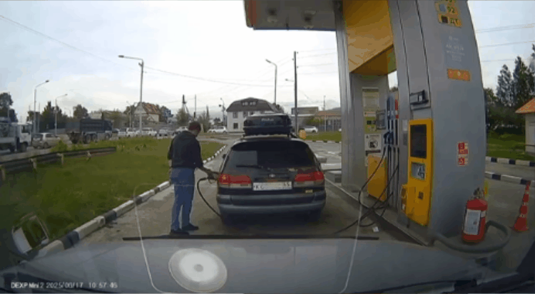 Dùng bật lửa để gỡ một miếng dán trên thân ô tô trong lúc đổ xăng, một người đàn ông ở Yuzhno-Sakhalinsk, tỉnh Sakhalin, suýt chút nữa gây ra thảm họa.