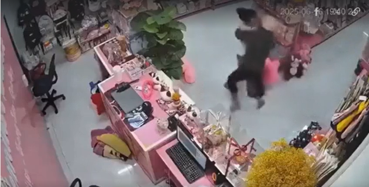 Camera an ninh ghi cảnh Cao Xuân Hiến và đồng phạm cướp ở cửa hàng quà tặng.
