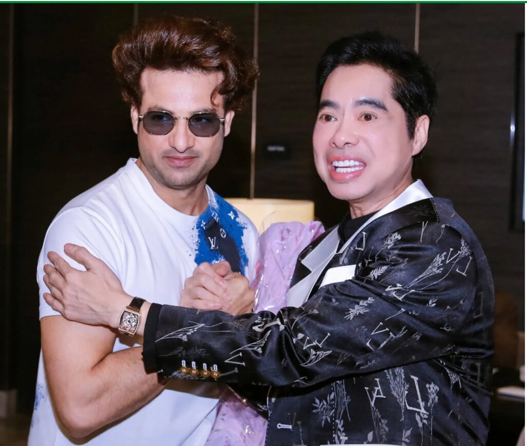 Danh ca Ngọc Sưn và diễn viên Himanshu Soni - ngôi sao từng thủ vai Đức Phật trong loạt phim truyền hình nổi tiếng “Cuộc đời Đức Phật”. Ảnh: NVCC