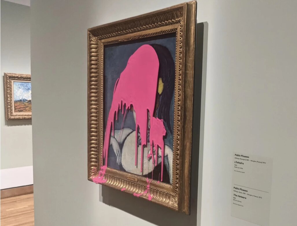 Một thanh niên Canada thuộc nhóm môi trường Last Generation Canada đã bị bắt sau khi tạt sơn hồng lên bức tranh “L’Hétaire” của họa sĩ Pablo Picasso. Twitter.
