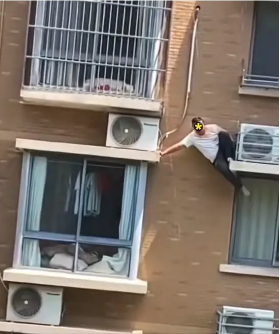Theo trang Sohu, đoạn clip lan truyền trên mạng ghi lại cảnh một người đàn ông đang đu bám bên ngoài ṭa nhà cao tầng, chật vật giữa không trung khi cố víu vào lan can ngoài ban công. Mồ hôi nhễ nhại, anh ta liên tục la lớn cầu cứu trong tư thế nguy hiểm thót tim.