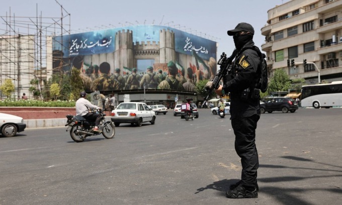 Nhân viên an ninh Iran đứng gác trên đường phố Tehran ngày 24/6. Ảnh: Reuters