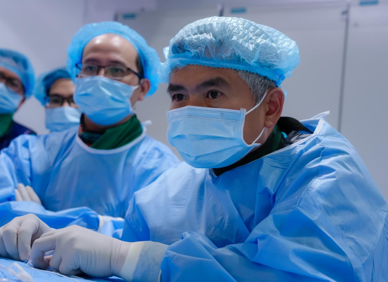Tiến sĩ Cường đang can thiệp mạch máu não cho bệnh nhân. Ảnh: BCCC.