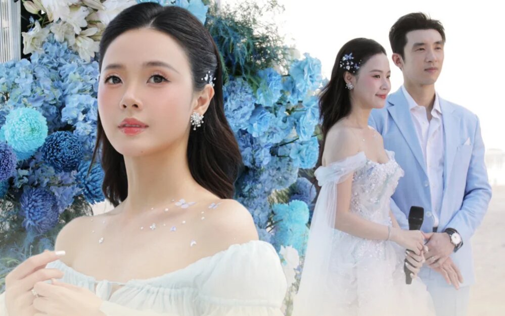 Trước đó, nữ diễn viên từng bật mí vì chồng thích màu xanh nên cô đã chọn tông màu của biển làm chủ đạo của buổi tiệc.