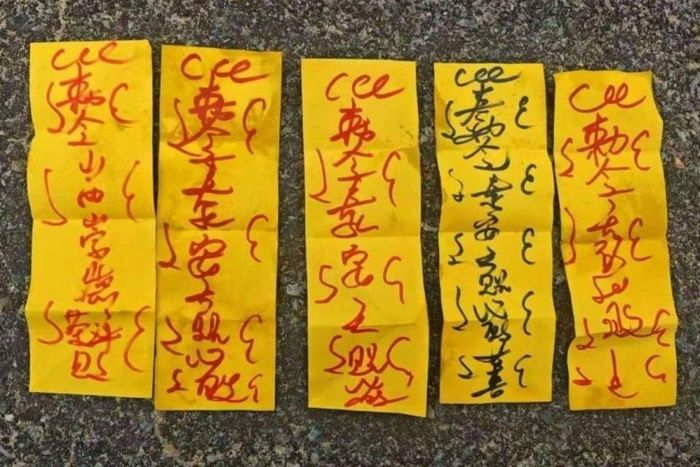 Những lá bùa màu vàng được đặt trong phòng thay đồ của Shanxi có nội dung: “Theo thánh chỉ, Shanxi Chongde Ronghai sẽ thất bại”.