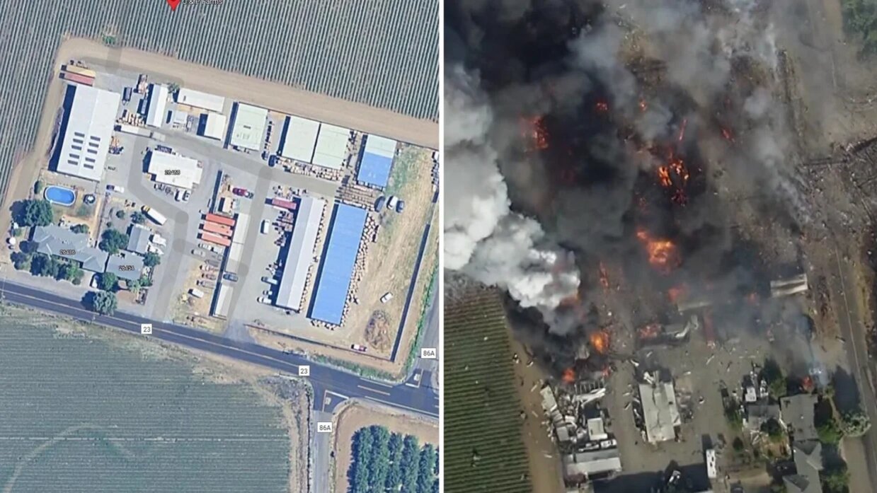 Một số công trình trên khu đất đã bị bốc cháy sau nhiều vụ nổ lớn, và ngọn lửa đã lan ra thành nhiều đám cháy cỏ với tổng diện tích cháy khoảng 80 mẫu Anh, theo Sở Cứu hỏa Esparto cho biết trong cuộc họp báo vào đêm thứ Ba 1/7. Vụ nổ ban đầu xảy ra vào khoảng 5:50 chiều cùng ngày thứ Ba này.
