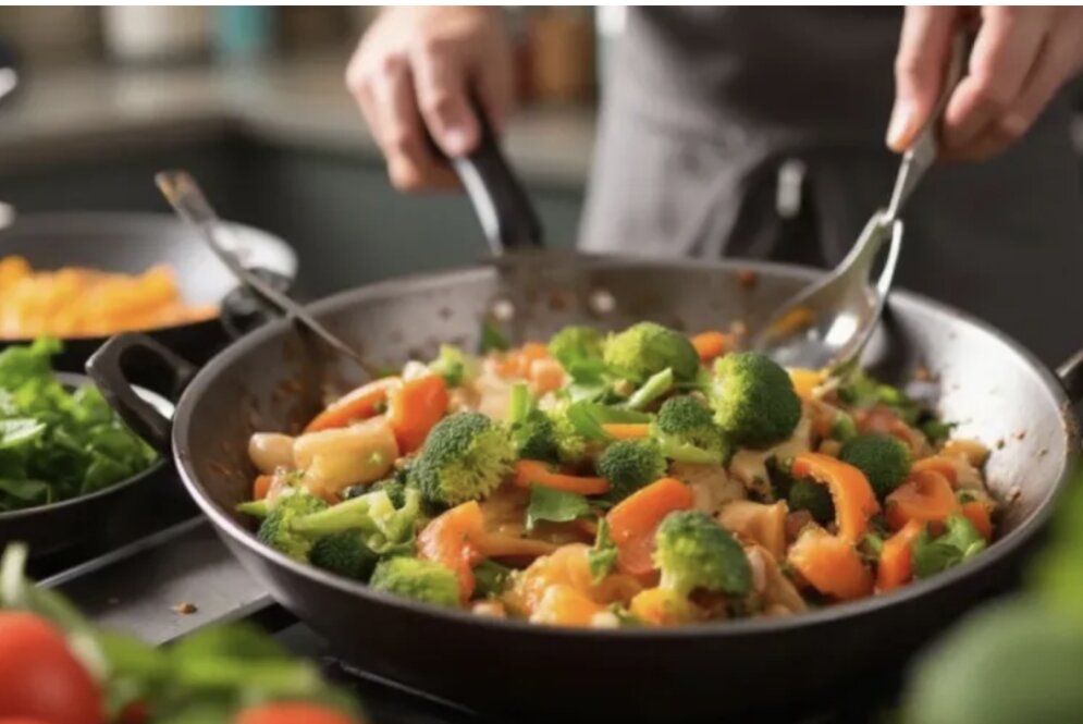 4. Xào xong một món không rửa nồi, tiếp tục nấu món khác