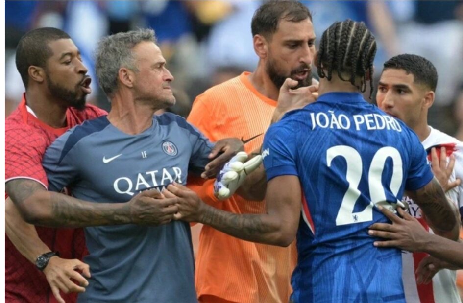 Sau trận PSG thua Chelsea 0-3 ở chung kết FIFA Club World Cup 2025, tại sân MetLife, New Jersey ngày 13/7, cầu thủ hai đội bắt đầu gây sự.