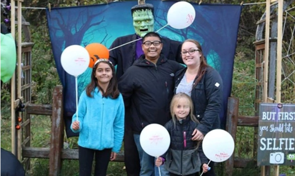 Thao Vo (giữa, đeo kính) chụp cùng vợ chưa cưới và hai con gái riêng của vợ. Ảnh: Seven Days.