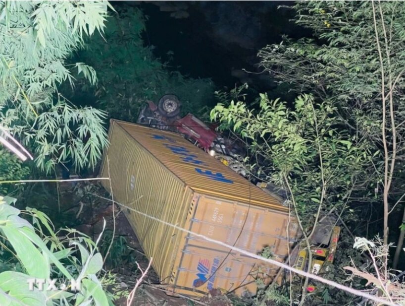 Old  Default Xe container lao xuống vực sâu 70 m, tài xế mắc kẹt trong cabin