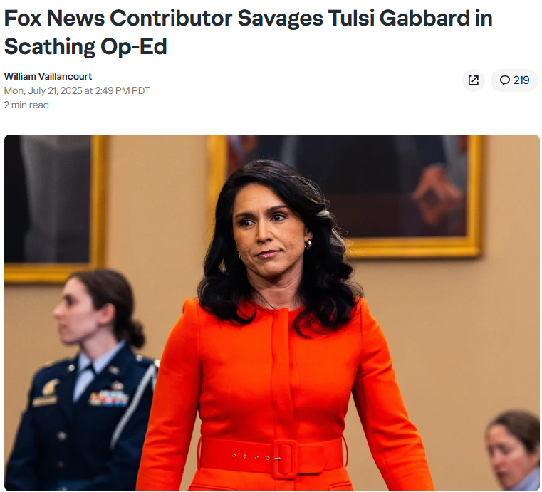Một cộng tác viên của Fox News đã chỉ trích lời công kích "gây hiểu lầm" của Tulsi Gabbard nhắm vào các thành viên chính quyền Obama về cuộc điều tra của họ về mối liên hệ giữa chiến dịch tranh cử của Trump năm 2016 với Nga.
