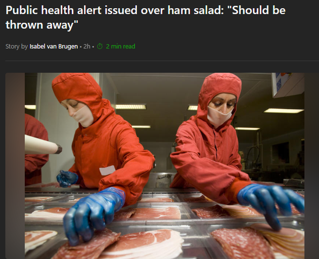 FSIS đã ban hành cảnh báo sức khỏe cộng đồng đối với các sản phẩm salad giăm bông có chứa vụn bánh mì do Cục Quản lý Thực phẩm và Dược phẩm (FDA) quản lý, đã bị Newly Weds Foods thu hồi do lo ngại chúng có thể bị nhiễm khuẩn listeria.