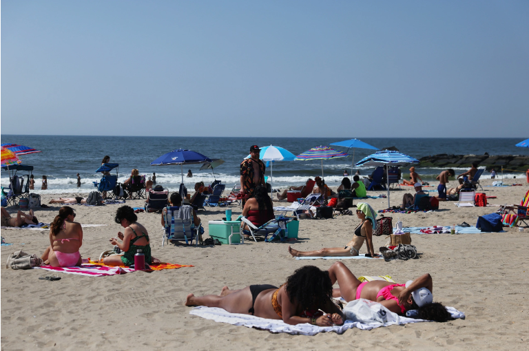 Người dân đến bãi biển Rockaway ở New York hôm 25.7 giữa đợt nắng nóng